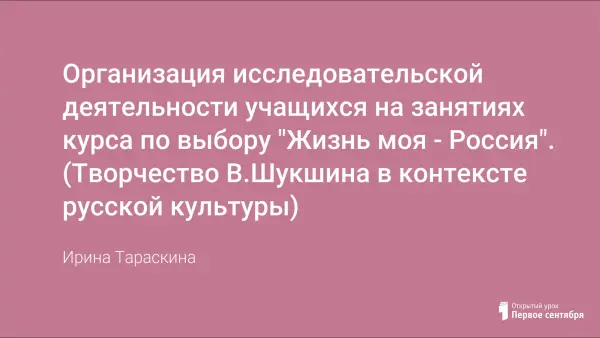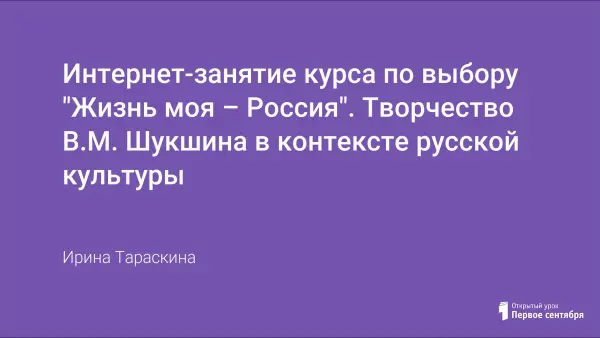 В 2009 году исполнится 80 лет со дня рождения и 35 лет со дня смерти В.М. Шукшина. Курс по выбору предусматривает углубленное изучение предмета, основанное на сопоставительном анализе произведений В.М. Шукшина и произведений других авторов; экранизаций его рассказов и повестей; виртуальном посещении музея писателя и экскурсии в с. Сростки.