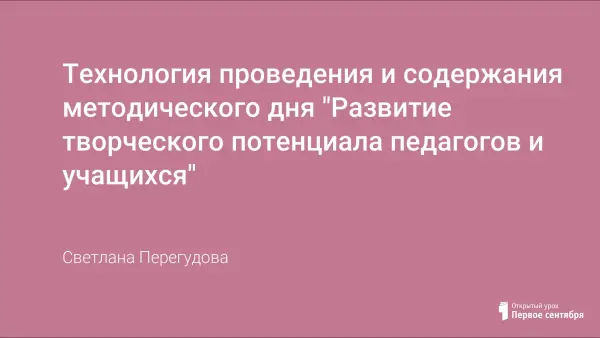 Материал представляет собой опыт проведения единого методического дня в школе. Представлено нормативно-правовое обеспечение данного методического мероприятия в виде локального акта - положения о методическом дне. Цель проведения: развитие творческого потенциала педагогов школы.