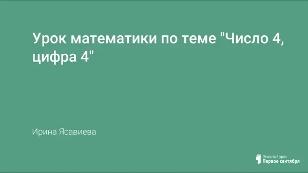 Урок направлен на закрепление навыков счета состава числа 4, написание цифры 4. Установить взаимосвязь между числами натурального ряда: присчитывание и отсчитывание единиц в натуральном ряду. Формируется представление о четырехугольнике, отрезках. Развиваются мыслительные операции (мышление, память, воображение), речь, творческие способности, способности анализировать и делать выводы.
