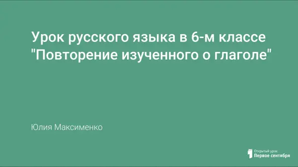 Урок русского языка в 6-м классе нацелен на обобщение тех сведений о глаголе, которые учащиеся получили в 5-м классе. Для активизации мыслительной деятельности школьников, а также для привития интереса к предмету на уроке использованы проблемные задания, а также задание творческого характера.