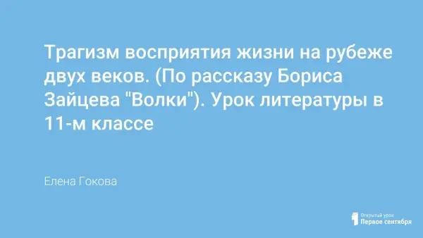 Предложенный урок нацелен на выявление некоторых особенностей литературы начала XX века и знакомит учеников 11-го класса с одним из этапных произведений творчества Б.Зайцева.
