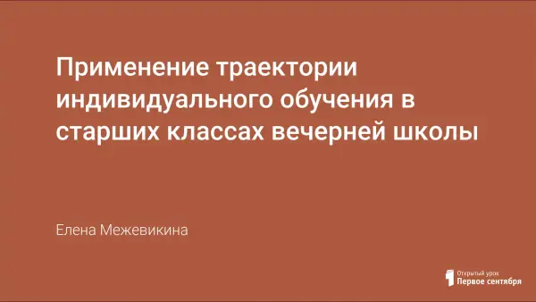 Применение траектории индивидуального развития учащихся в старших классах вечерней школы дает возможность учителю использовать различные механизмы, адекватные современным условиям, формы и подходы, обеспечивающие развитие личности учащихся и их социализации, учитывающие готовность учащихся к обучению, индивидуально-психологические особенности, состояние здоровья, социальное положение школьников. Индивидуальная программа развития творческого потенциала учащихся позволяет достичь высоких результатов в научно-практической деятельности и способствует повышению самооценки учащегося.