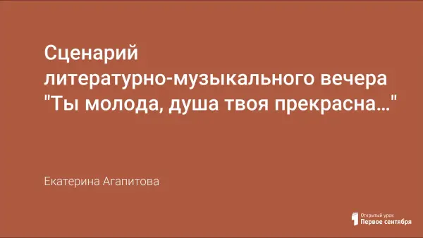 Представлен сценарий проведения литературно-музыкального вечера "Ты молода, душа твоя прекрасна".