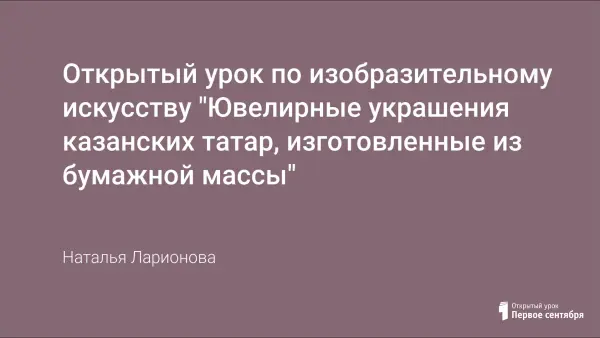 Представлен конспект открытого урока для учащихся 3-го класса по теме "Ювелирные украшения казанских татар, изготовленные из бумажной массы".