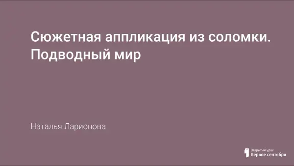 На уроке рассматривается история возникновения изготовления изделий из соломки. Учащиеся узнают как применялись эти изделия в жизни людей, знакомятся с техникой выполнения и приемами работы с соломкой. Дается понятие "сюжетная композиция", выполняется практическая работа по теме «Подводное царство».