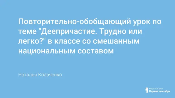 Повторительно-обобщающий урок по теме "Деепричастие. Трудно или легко?" подготовлен для класса со смешанным национальным составом, в котором обучаются дети шести национальностей. Для урока подобраны упражнения, направленные на формирование умения использовать деепричастие с целью совершенствования устной и письменной русской речи учащихся.