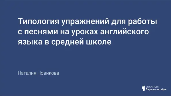 Представлена типология упражнений для работы с песенными материалами на уроках английского языка в средней школе. Данные материалы собраны и систематизированы автором. С помощью данных типов упражнений можно создать свои собственные разработки по аудированию. В приложении представлены задания к песням, которые использованы в работе для обучения учащихся навыкам понимания английской речи на слух.