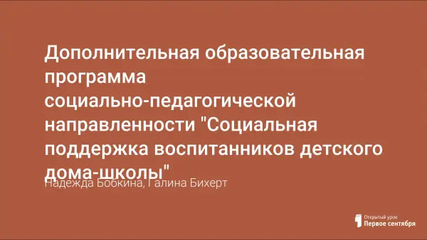 Программа направлена на обеспечение социально-педагогической поддержки детей-сирот и детей, оставшихся без попечения родителей, обучающихся и воспитывающихся в детском доме-школе, и формирование готовности воспитанников к самостоятельному жизнеустройству и трудоустройству после выпуска из детского дома-школы. Возраст обучаемых: 16–18 лет, 9-е выпускные классы государственного образовательного учреждения для детей-сирот и детей, оставшихся без попечения родителей.