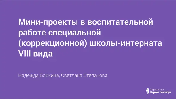 Мини-проекты в воспитательной работе специальной (коррекционной) школы-интерната VIII вида