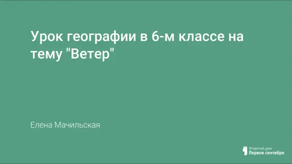 Урок знакомит учащихся с понятием и причинами образования ветра. В качестве наглядного представления материала используется презентация, созданная в программе MS Power Poit.