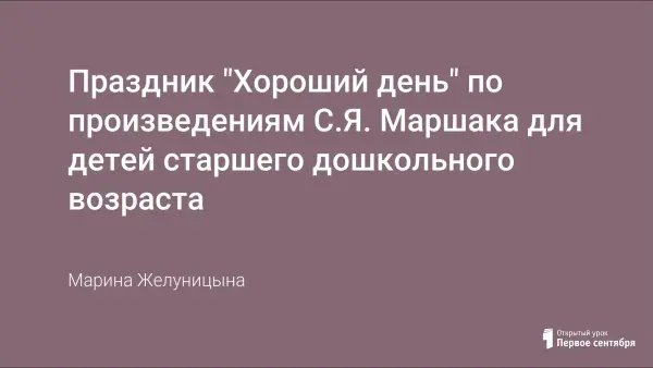 Вашему вниманию предлагается праздник "Хороший день" по произведениям С.Я. Маршака.