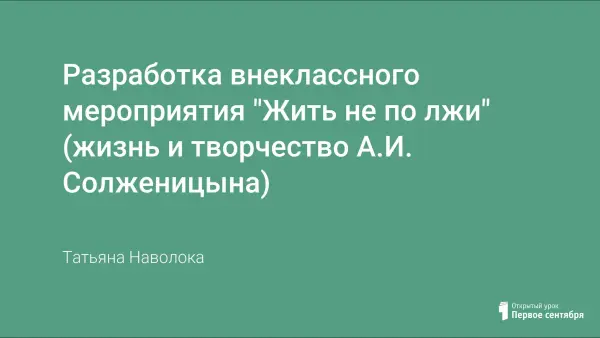 Цели урока: познакомиться с жизнью писателя, его взглядами на жизнь; на примере жизни А.И. Солженицына воспитывать у ребят гражданственность, любовь к Родине; пробудить у учащихся желание переосмыслить события недавнего прошлого нашей Родины.