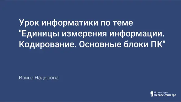 Предлагаю провести урок по теме "Единицы измерения информации. Кодирование. Основные блоки ПК" именно в нестандартной форме на завершающем этапе изучения данных тем, так как он формирует у учащихся устойчивый интерес к учению, снимает напряжение, помогают формировать навыки учебной деятельности, оказывает эмоциональное воздействие на детей, благодаря чему у них формируются более прочные, глубокие знания.