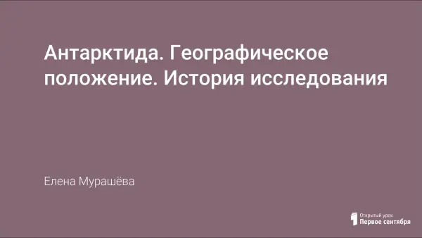 В ходе урока выявляются особенности географического положения Антарктиды, отрабатывается умение составлять характеристику географического положения объекта по картам атласа. Также учащиеся знакомятся с историей открытия и исследования Антарктиды, узнают о вкладе русских учёных в открытие и исследование Антарктиды. На уроке учащиеся работают с картами атласа, контурными картами, учебником и дополнительной литературой, смотрят фрагмент видеофильма и для закрепления материала решают кроссворд.