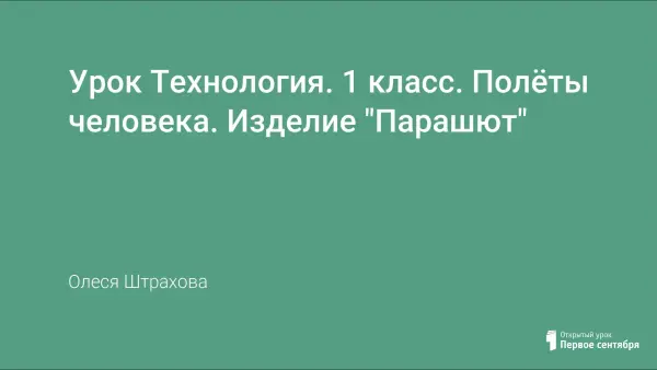 Урок призван познакомить учащихся с некоторыми видами летательных аппаратов, показать возможности полёта человека через историю воздухоплавания, выполнить модель парашюта, закрепить умение работать с бумагой, умение организовывать свое рабочее место.