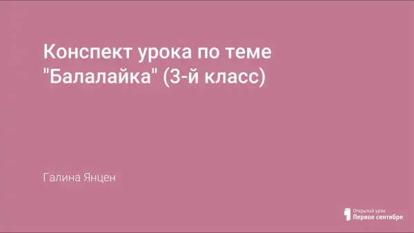 На уроке учащиеся должны продолжать знакомство с музыкальной культурой русского народа, с музыкальными инструментами, в частности балалайкой, ее строением и звучанием.