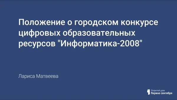 Представлено Положение о городском конкурсе цифровых образовательных ресурсов "Информика-2008".