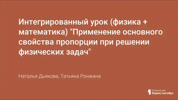 Интегрированный урок (физика + математика) "Применение основного свойства пропорции при решении физических задач"