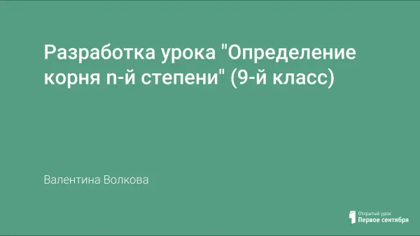 Данная разработка урока в интересной форме последовательно раскрывает тему «Определение корня n-й степени». На уроке на базе накопленных учащимися знаний по теме «Квадратный корень» вводится понятие «корня n-й степени». У учащихся формируются навыки вычисления корня n-й степени, когда n - натуральное число. Все этапы урока сопровождаются мультимедийной презентацией.