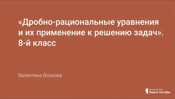 Цель урока: повторение в познавательной форме алгоритма решения дробно-рациональных уравнений и решения задач с помощью уравнений; повышение интереса учащихся к изучению дисциплины. Урок сопровождается презентацией, проверяет знания учащихся на уроке, своевременно выявляет ошибки и исправляет их.