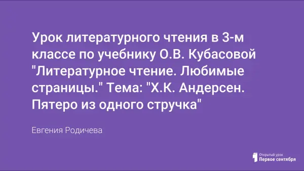 На уроке учащиеся знакомятся с творчеством Х.К.Андерсена и его произведениями, работают над развитием устной речи, навыка выразительного беглого чтения, чему способствуют специальные задания по слоговым, цифровым таблицам для уроков литературного чтения. На занятии необходим компьютер с установленной программой Power Point.