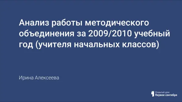 Анализ работы методического объединения учителей начальных классов за год показывает результаты работы по выполнению поставленных задач, работу учителей над темами самообразования, с учащимися, имеющими высокую мотивацию к обучению, работу по совершенствованию базы предметных кабинетов. Итоги этой работы позволяют качественно спланировать работу МО на следующий год.