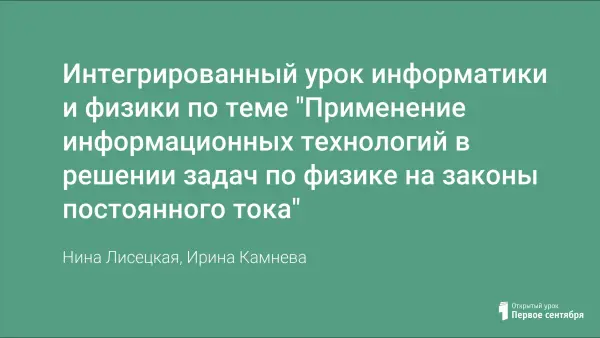 Интегрированный урок информатики и физики по теме "Применение информационных технологий в решении задач по физике на законы постоянного тока"