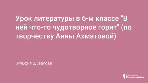 Урок литературы в 6-м классе посвящен творчеству Анны Ахматовой. Через проникновение в художественный мир происходит развитие речи учащихся, обучение умению анализировать лирику, выразительно читать, а также формирование исследовательских навыков и творческих способностей учащихся.