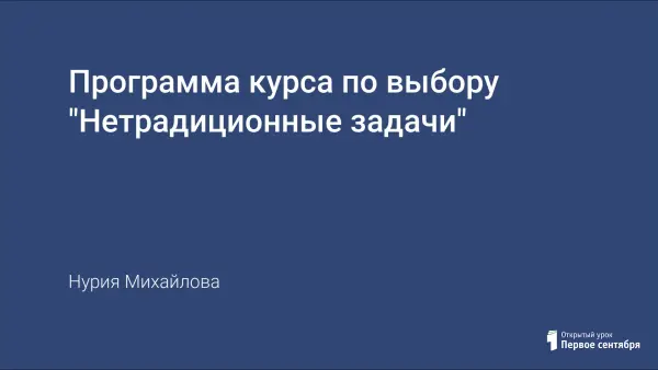 При обучении решению задач важно показать учащимся различные методы решения одной и той же задачи. Только при сопоставлении можно выбрать красивый и рациональный путь решения. Этот курс систематизирует и углубляет ранее изученные знания и приобретенные умения и навыки.