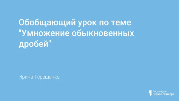 Обобщающий урок по теме "Умножение обыкновенных дробей" проводится после решения задач, где повторили решение ключевых заданий темы. Урок проводится с целью повторения всех теоретических вопросов, проверки степени их усвоения. Он является необходимым звеном для объяснения деления обыкновенных дробей.
