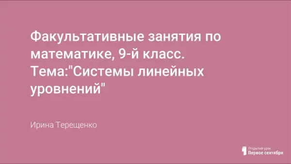 Факультативное занятие по теме «Системы линейных уравнений» для учащихся 9 класса относится к группе занятий, которые предназначены как для дополнения знаний учащихся, полученных ими на уроках, так и для их углубления. Структура занятия: лекция, практика, тест или зачет.