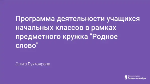 Программа деятельности учащихся начальных классов в рамках предметного кружка "Родное слово"