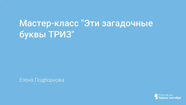 Цель мастер-класса: познакомить присутствующих с аспектами и приемами ТРИЗ-педагогики, способствующими формированию творческого мышления у учащихся.