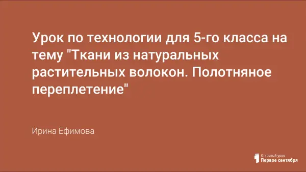 Целью урока является систематизация и дополнение знаний учащихся о натуральных волокнах растительного происхождения, формирование представления о ткани как о двух системах нитей, обучение различать волокна по своему составу, определять направление нитей основы и утка, воспитание эстетического вкуса, внимательности, привитие аккуратности.