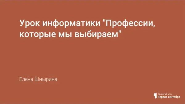 Урок информатики для 11-го класса. На этом уроке завершается работа над презентацией, и учащиеся представляют свои проекты, созданные по группам, остальным ученикам класса. Урок интересен тем, что показывает, как можно использовать информатику в процессе профориентации.
