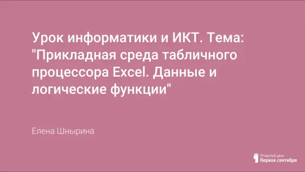 Урок информатики и ИКТ по теме "Прикладная среда табличного процессора Excel. Данные и логические функции" включает в себя интерактивный тест по проверке знаний, теоретическую работу с презентацией, связанной гиперссылками с электронной таблицей и практическую работу над новым материалом.