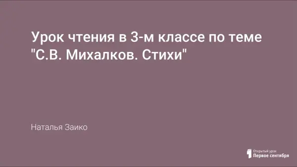 Урок чтения в 3-м классе, посвященный поэзии С.В. Михалкова.