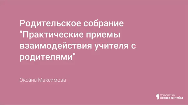 В работе предлагаются практические приемы взаимодействия учителя с родителями на родительских собраниях.