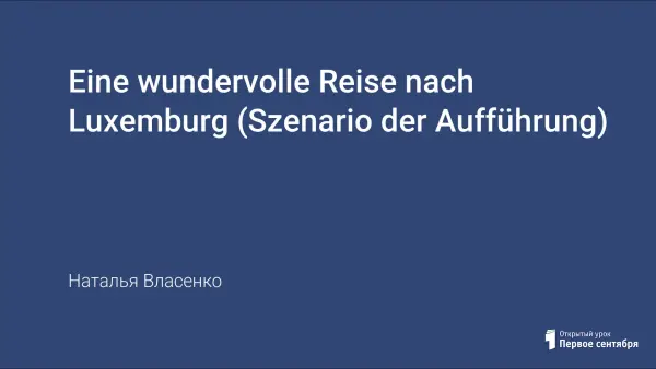 Люксембург – это маленькая европейская страна, которая играет большую роль в Европейском Союзе. Большинству российских школьников она практически неизвестна. Данный сценарий был разработан для участия в конкурсе «Немецкие мотивы», посвященном Люксембургу. В нем сочетается фактическая информация об этой интересной современной стране с древней легендой о ее происхождении. Сценарий разработан для учащихся 7–9-х классов. Продолжительность сценической композиции 10–12 минут.