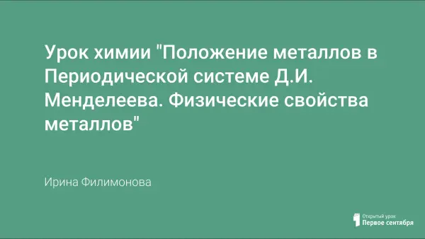 На уроке учащиеся изучают особенности строения металлов, металлической связи и кристаллической решетки металлов; дается характеристика основных физических свойств металлов, выясняются связи между внутренним строением и физическими свойствами.