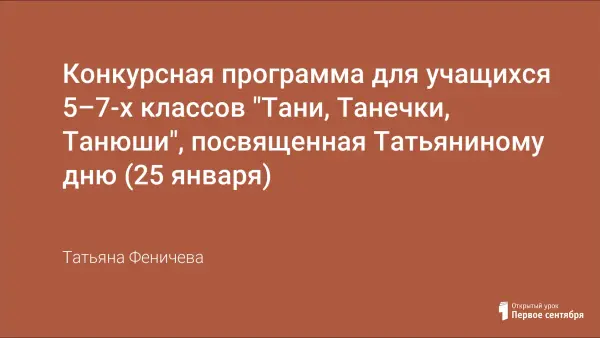 Ежегодно 25 января в России отмечают Татьянин день – день покровительницы российского образования и студентов. Так как ученики – это будущие студенты, то этот праздник непосредственно можно отнести и к ним. Во время проведения конкурсной программы дети не только активно отдыхают, но и развивают свои творческие способности и расширяют кругозор.