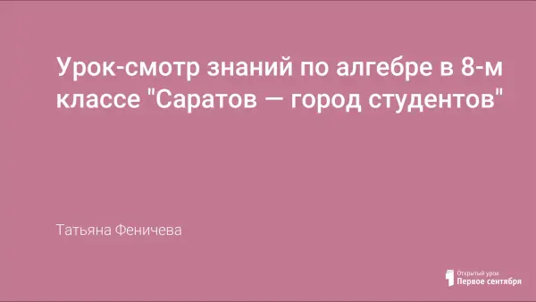 В статье представлен конспект последнего урока алгебры в 8-м классе в форме смотра знаний. На данном уроке проходит не только повторение и обобщение изученного материала за год, но и знакомство с вузами города Саратова.