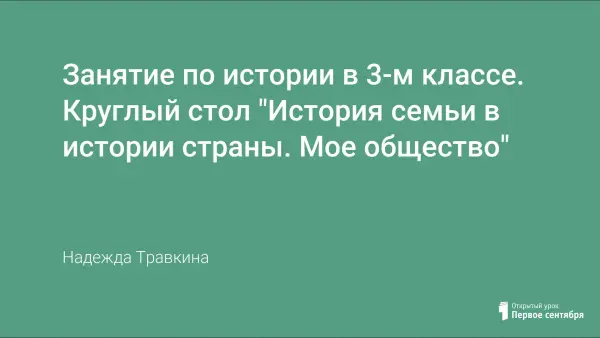 Занятие по истории в 3-м классе. Круглый стол "История семьи в истории страны. Мое общество"