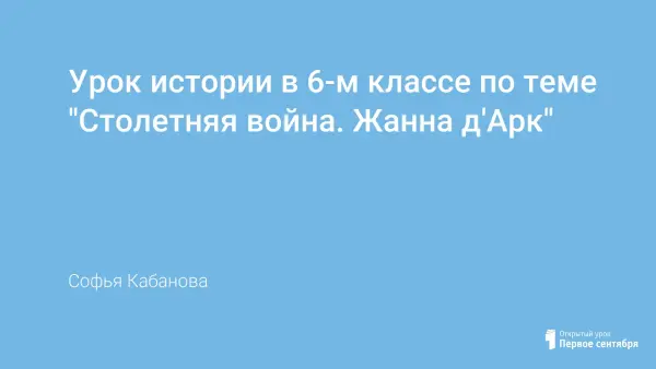 Урок истории в 6-м классе по теме "Столетняя война. Жанна д, Арк" дает возможность учащимся уточнить знания о том, что может являться причиной войны и поводом для её начала. Но самое главное, материал урока позволяет понять, какую роль может играть простой народ и личность в борьбе за независимость своей страны. Для тех ребят, кто интересуется историей, дана возможность поработать с дополнительным материалом.