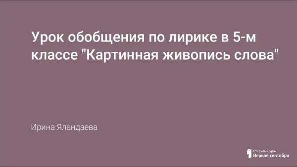 Данная статья представляет собой урок обобщения программного материала по разделу "Лирика" и входит в систему уроков по литературе в 5-м кл. по программе А.Г. Кутузова "В мире литературы".