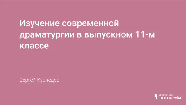 Литературное образование в старших классах средней школы невозможно без изучения новейшей русской литературы. Не соприкоснувшись с ней, молодой человек не сможет своим сознанием жить в новом времени. Особое внимание при изучении новейшей литературы необходимо уделить драматургии, поскольку драматические произведения наиболее остро раскрывают противоречие эпохи. Изучению современной драматургии целесообразно отвести два урока.