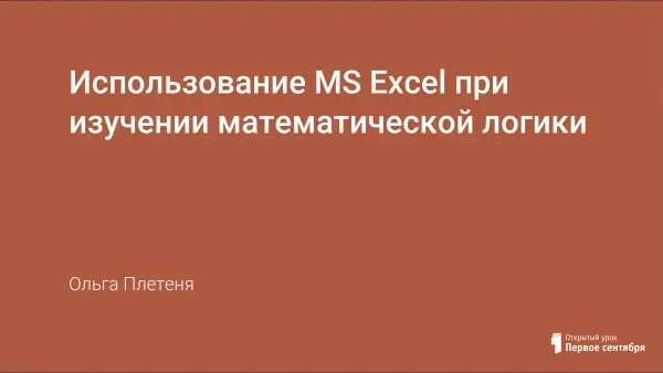 В данной работе рассмотрен пример использования табличного процессора MS Excel для закрепления материала по теме "Математическая логика"