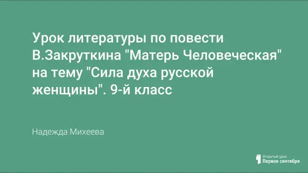 Знакомство с повестью В. Закруткина дает учащимся представление о тяжелом военном времени, пробуждает интерес к военной истории; способствует формированию таких качеств учащихся, как милосердие, доброта, человечность, бескорыстие, жизнестойкость, выносливость, вера в себя; воспитывает у подрастающего поколения чувство истинного патриотизма, осознание своей жизненной позиции.