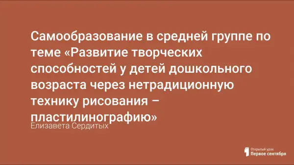 Цель занятия: совершенствование своего теоретического, практического уровня, профессионального мастерства и компетентности; систематизировать работу по реализации мероприятий, направленных на развитие творческих способностей детей через занятия пластилинографией.