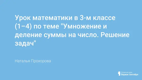 Данный урок проведен в третьем классе по программе УМК "Гармония", на нем продолжается формирование умения решать задачи. А именно: устанавливать связи между данными и искомыми величинами в текстовой задаче и в соответствии с этим выбирать, а затем выполнять арифметические действия, моделировать условия задачи, применять способы умножения и деления суммы на число, развивать приемы умственных действий.